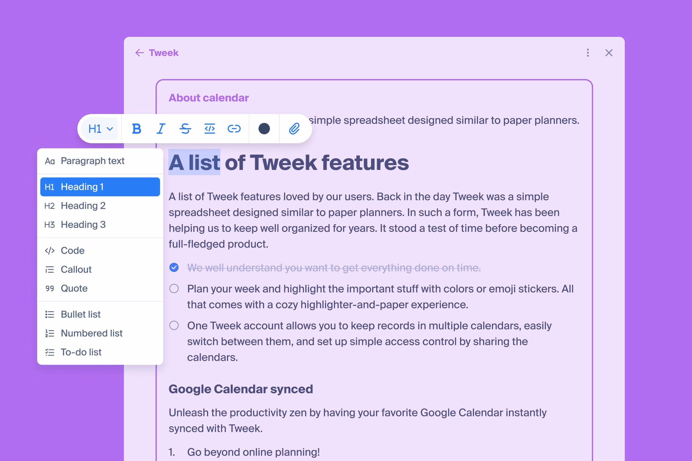- Bold, Italic, Strikethrough