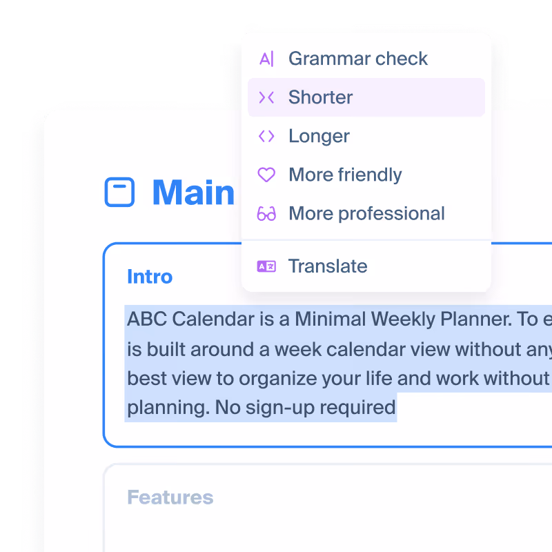 Change text tone or length, or translate it to other languages.